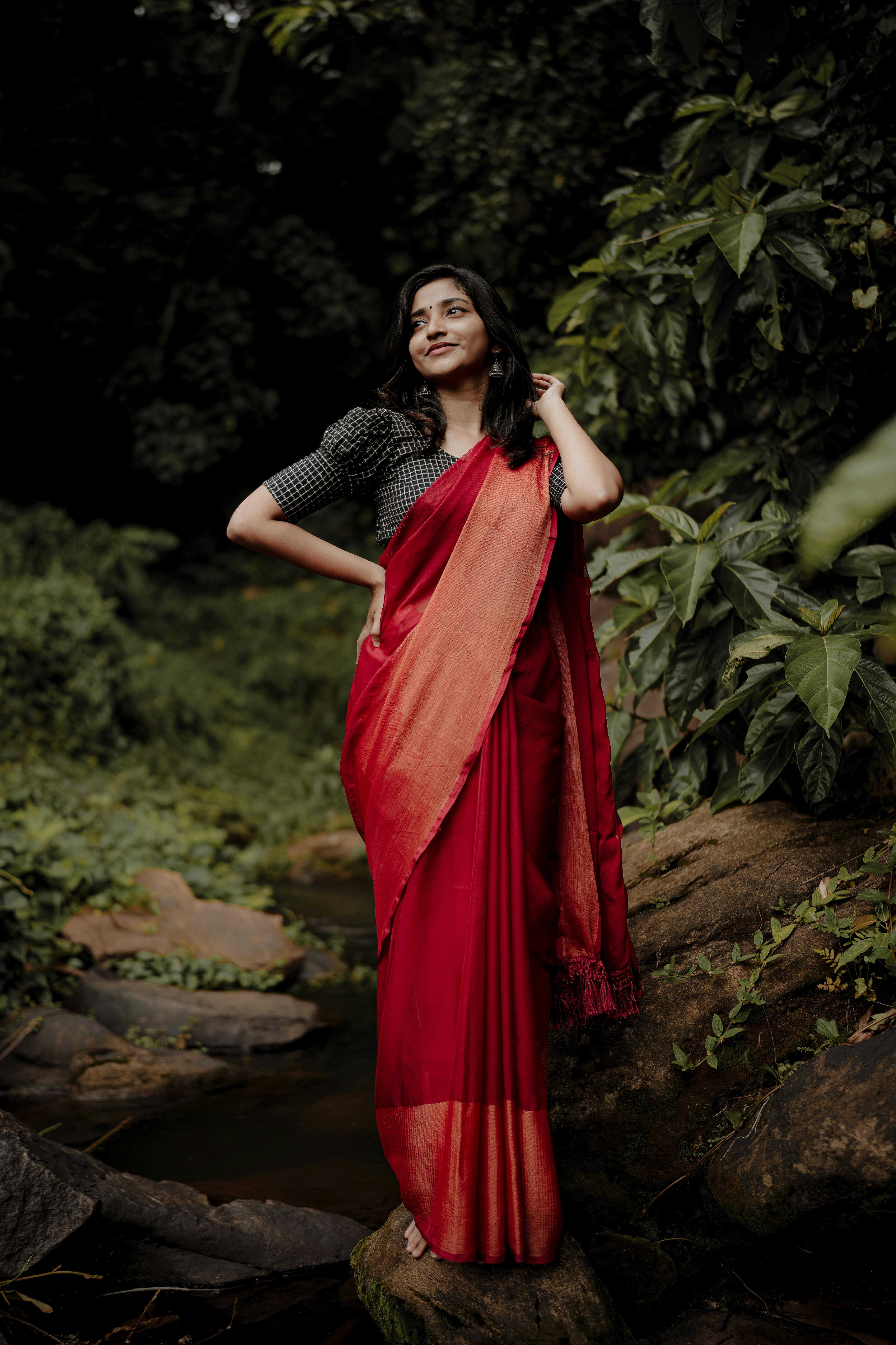 Zari Work: Rich zari (gold or silver thread) is often used in elaborate motifs, creating a shimmering effect that enhances the beauty of the saree.